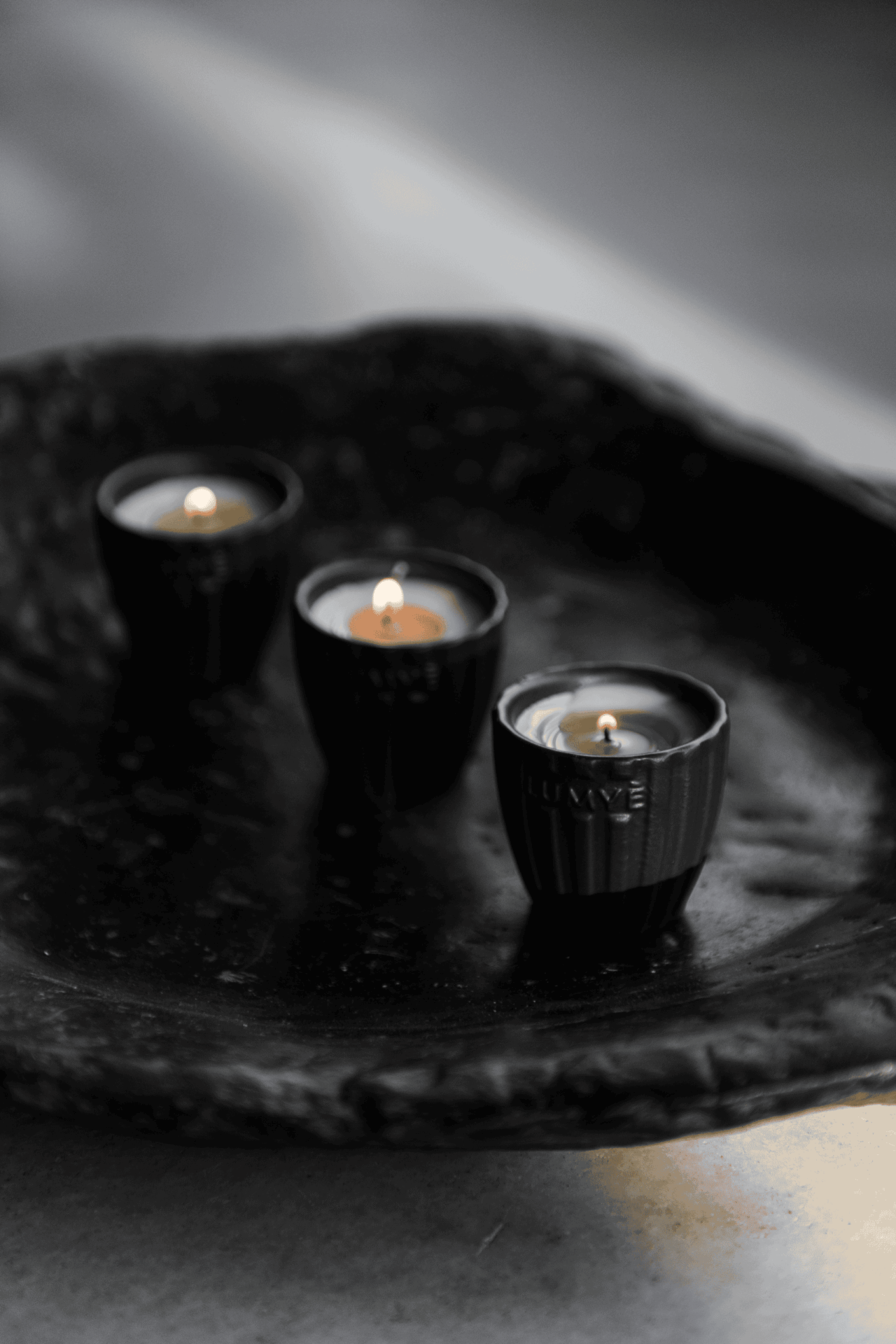 LUMYÈ wykorzystuje wyłącznie naturalne olejki eteryczne najwyższej jakości z pełną dokumentacją IFRA (International Fragrance Association), tworząc unikalne kompozycje zapachowe takie jak irys, pieprz, ambra i drewno cedrowe w świecy Fuji czy litsea cubeba, neroli, czarny pieprz i ylang-ylang w świecy Kea