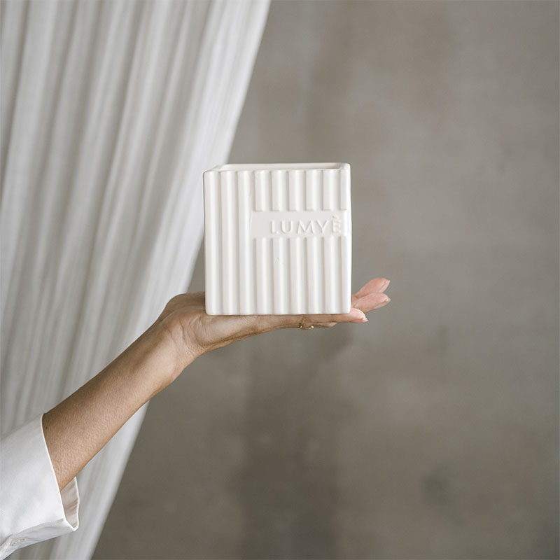 LUMYÈ wykorzystuje wyłącznie naturalne olejki eteryczne najwyższej jakości z pełną dokumentacją IFRA (International Fragrance Association), tworząc unikalne kompozycje zapachowe takie jak irys, pieprz, ambra i drewno cedrowe w świecy Fuji czy litsea cubeba, neroli, czarny pieprz i ylang-ylang w świecy Kea